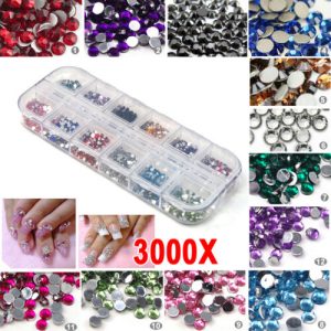 3000pcs Nail Art Rhinestones Decoration DIY for UV Gel Acrylic Systems 2mm USA