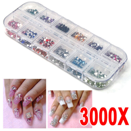 3000pcs Nail Art Rhinestones Decoration DIY for UV Gel Acrylic Systems 2mm USA
