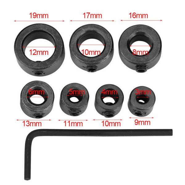 3mm, 4mm, 5mm, 6mm, 8mm, 10mm and 12mm drill depth stops will fit drill bits in different size.