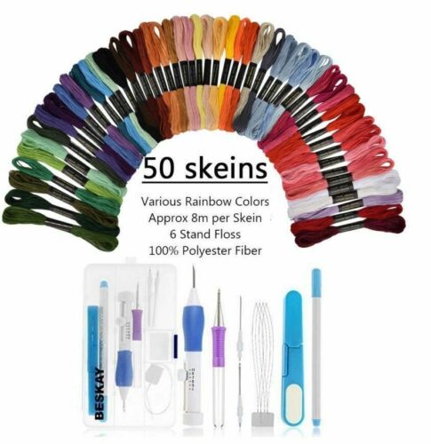 1.6mm Punch Needle, 1 x 2.2mm Yarn Needle, 1 x 50 color threads, 9 x 3